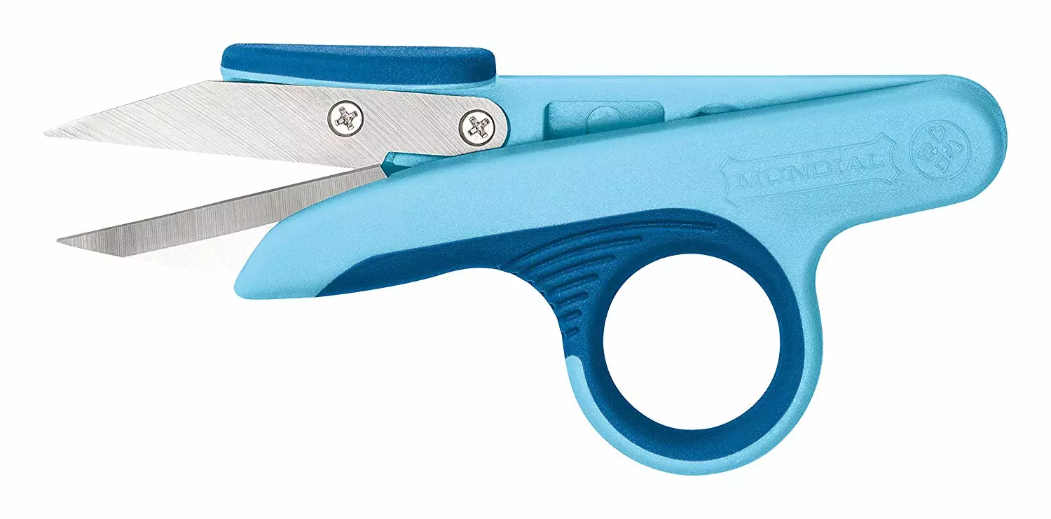 4 1/2″ Blue Super Edge Thread Clippers – Mundialrn4.5 inch Stainless steel bladesWhen you’re serious about your sewing and crafting you should be serious about your cutting toolMundial SuperEdge 4.5 inch Thread Clips scissors feature cutlery quality stainless steel blades designed for maximum control and sharp straight accurate cuttingThis SuperEdge scissors blue polypropylene handles prevent slippage and the blades are constructed of cutlery quality stainless steelOpens and closes easily; great addition to any sewing kit