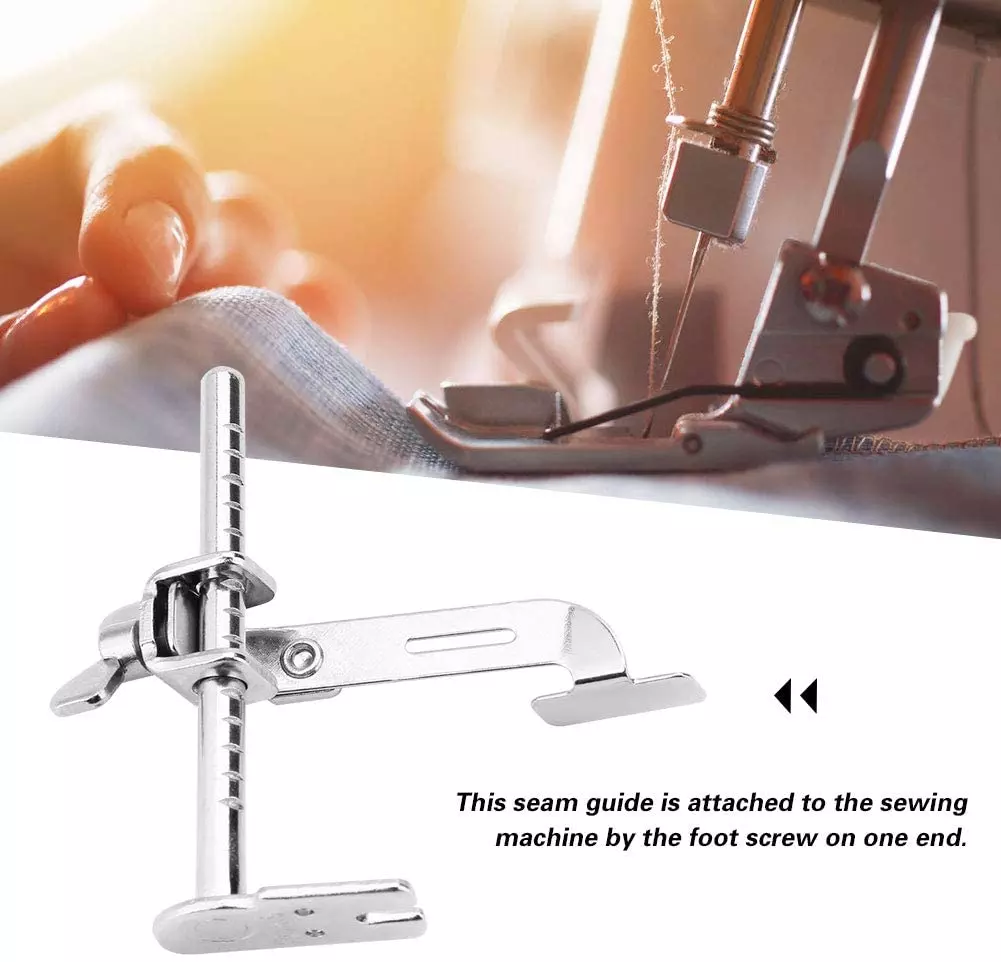 Adjustable Seam Guide for Industrial Single Needle Sewing MachinernHigh Quality – 100% brand new and made of high quality metal. The straight line can be trimmed by the seam guide with fine brightness and smoothness.rnEasy to Use – This seam guide is attached to the sewing machine by the foot screw on one end. It is used to sew perfectly placed seams with accurate spacing between the linesrnPerfect Sewing Accessories – The gauge is used for the cutting opening when the garment is sewn. Using this tool can greatly improve product quality, improve work efficiency.rnEasy to install – Seam guide is easy to install and use, it can completely replace old or bad with different type seam guide.