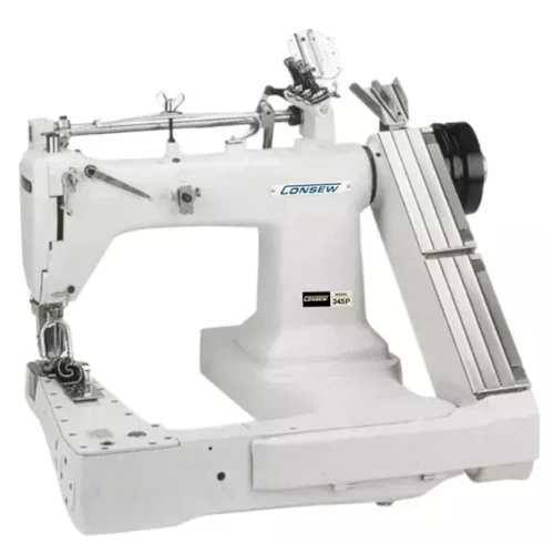 Consew 345-3 High Speed, Feed-Off-The-Arm Type, Drop Feed, Double Chainstitch, Lap Seam Felling, 3 Needles Lockstitch Industrial Sewing Machine Comes With Table, Legs, Servo Motor and LED LamprnFully Automatic Lubrication, Chain Cutter, Screw Adjust Stitch Regulator