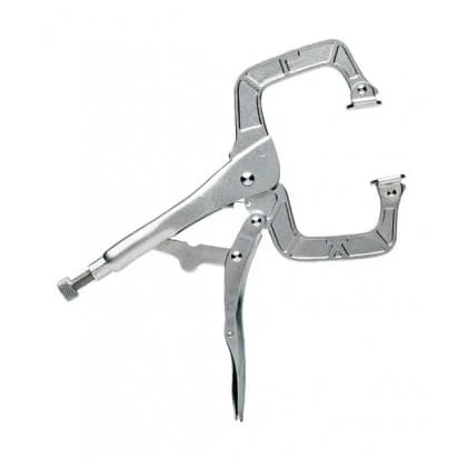 C-clamps have large throats to easily fit over awkward project pieces. A locking C-clamp also locks-down tight, and adjusts with a turn screw to produce just the right amount of clamping force; retains that adjustment for repetitive tasks. Trigger release lets you remove it quickly when its work is done. Swivel pads help give you a secure grip on tapered pieces and delicate projects without marring your work surface. Crafted of heat-treated alloy steel for a long working life.