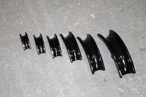 - Quick-change shoes (bending die sizes) for pipe of 1/2, 3/4, 1, 1-1/4, 1-1/2, and 2″ diameter