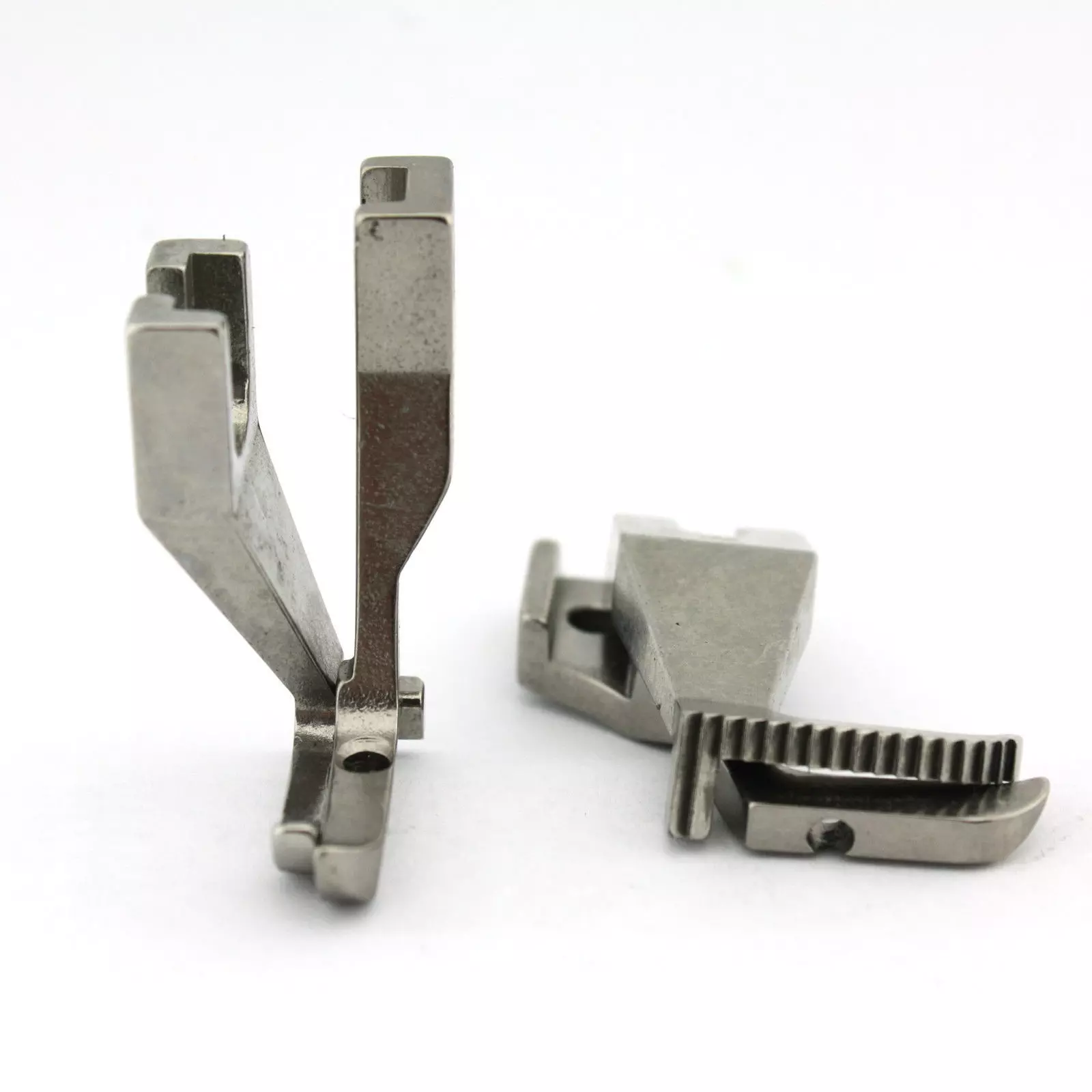 Left Toe Zipper Walking Presser Foot SetrnPart Number:rnU192LS – Outside Presser FootU193K – Inside Presser FootrnThis set contains one outside foot and one inside foot. The outside foot has a single toe which allows close stitching to the zippers and edge sewing. The outside toe is on the left side. Zipper will go to the Right side of the foot. Outside foot have teeth on the bottom.rnrnMACHINE COMPATIBILITY:JUKI Models: DU-141, DU-141NH, DU-1181N, DU-1281-7Artisan Models: 797AB, 1797Brother Models: DB2-B797, DB2-B798Chandler Models: DY-337, DY-349Consew Models: 120, 145R, 146RB, 175RB, 199RB, 205RBFeiyue Models: FY-5318Gemsy Models: 318, 718, 818, 1808Global Models: WF-995, WF-3995Highlead Models: GC0318, GC0388, GC0398Mitsubishi Models: DY-330, DY-337, DY-340, DY-349, DY-350, LY-3300Nakajima Models: DBU-180L, 181L, 280LNeels Models: NS-0302New-Tech Models: GC-0303Reliable Models: MSK-8300Rex Models: 11-155Sunstar Models: KM-340, KM-341Typical Models: GC6-6Zoje Models: GC0318-1, GC0618Yamata Models: FY-5318rnAnd many other comparable walking foot machines.rnPresser Foot Shank Type: Industrial Walking FootPresser Foot Type: Zipper / Cording / Welting / Piping