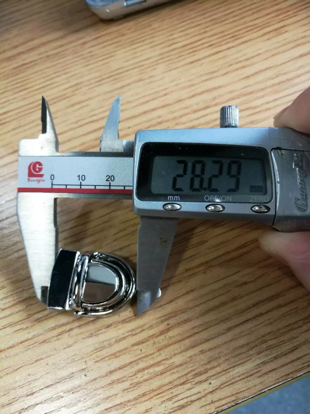 Metal Lock – Baby PressrnThis is the most adorable little press/tuck/tongue lock – whatever you want to call her, she’s a cutie! Baby press locks for your purses, wallets, luggage, and backpacks. These are sturdy professional grade quality and so easy to install. rnInstall this little lock by sliding the press part onto a finished bag or wallet flap and screwing through the back to secure – USE GLUE for security! Place the backing plate prongs (the catch part) through your fabric and secure over a washer. Add a layer of stabilizer in between for strength. EasyrnOur special plating process to makes for shiny smooth finished metal locks. Use with our other coordinating hardware. rnAvailable in Silver, Gold, Gunmetal, and Bronze.rnAVAILABLE SIZES::rnrn7/8″ (22 mm) wide x 1-1/8″ (28mm) high. The groove that slides onto the bag/wallet flap has 1/4″ (6 mm) opening, and the lock sits about 1/2″ (12 mm) high above the bag surface.rnSold in single pieces.