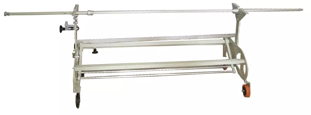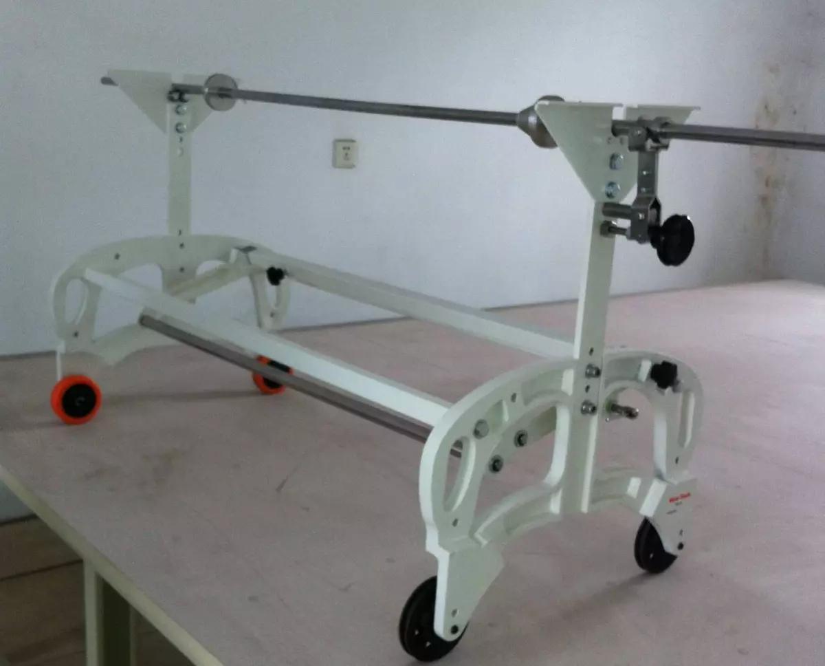 The New-Tech manual and expandable fabric spreader is adjustable from 48″ all the way to 72″. Uprights can accommodate fabric roll diameters up to 26″. Spreads face-to-face or face-up one way. Comes complete with everything you see in the photos including, bar, cones, etc.rnrnItem comes unassembled. For assembly, please indicate in drop-down menu.rnrn***Your cutting table should be equipped with RAIL GUIDE to use the spreading machine accurately. please follow the link to purchase.rnGuide Rail For Manual Fabric Spreading MachinesrnWE HAVE ONE STYLE OF SPREADING MACHINE CURRENTLY AVAILABLE:rnRAIL GUIDE MOUNT, TRADITIONAL SPREADING MACHINE THAT MUST USE GUIDE RAIL.
