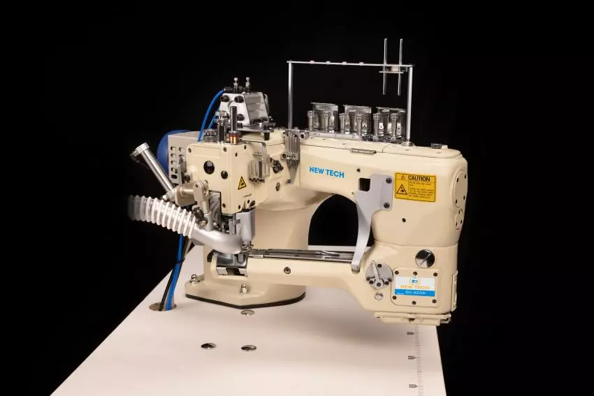 New-Tech GC-62GD 4 Needle 6 Thread Flat Seamer Feed-Off-The-Arm Top And Bottom Cover Stitch With Vacuum System Industrial Sewing Machine With Table And Built-in Direct Drive Servo Motor | GoldStar Tool