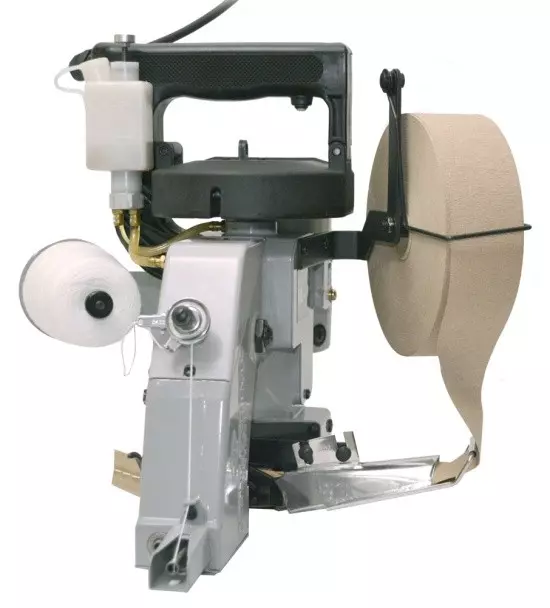 New-Tech GS26-1AR rnTape Sew Standard Hand-Held Portable Bag CloserrnThis portable bag closing machine with 55mm tape feeder is ideal for closing seed bags, animal feeds, fertilizer, flour, chemicals, etc. Closes sacks in seconds. Works with cotton, hessian, kraft paper, jute, woven cloth and other bag materials.
