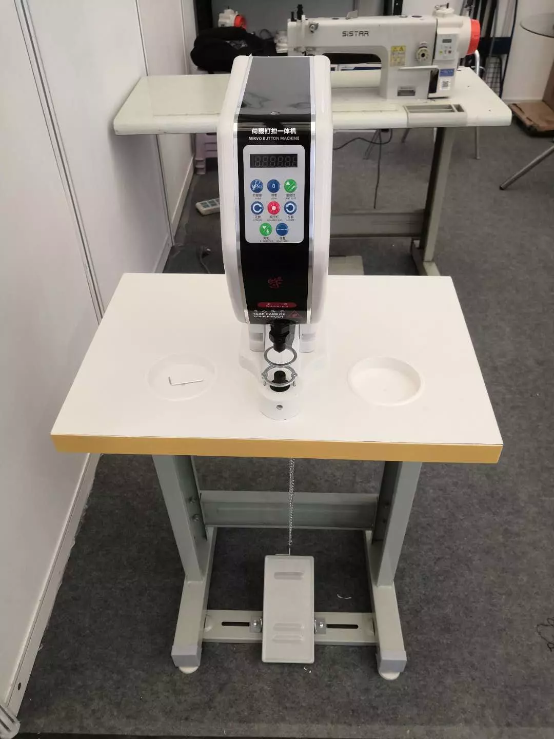 Servo Press for Grommets, Snaps, Buttons & Rivets w/Laser Pointer (1 Die Set)rnOur top of the line, fully automatic, servo motor-powered grommet /eyelet/snap/rivet machine works for projects onrn any scale. Operates on a 110/220 volt unit securely attached to a stand with foot pedal for hands-free application,rn and is compatible with hundreds of dies for unlimited uses.*rnMACHINE FEATURES:rnrn Extremely fast and quiet servo motor. A speed of 30 punches per minute.rn Automatic safety mechanism. The machine only punches after the dies have been closed together, protecting thern user from harm.rn rn Automatic adjustment technology. Will adjust to varying fabric thicknesses, making it simple for anyone torn operate.rn rn Energy efficient. Substantial energy savings (less than 0.2 kilowatts per hour in 12 hours of use when comparedrn to 3 kilowatts for non-servo-electric press machines).rn rn LED position indicator. A bright red laser helps guide the user, guaranteeing accurate placement of grommets.rn rn The stand includes storage holders, drawer and measurement guides