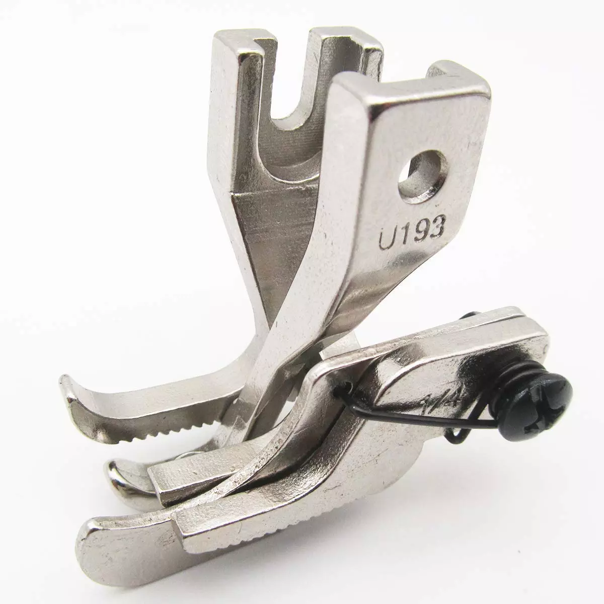 Right Edge Guide Topstitch Industrial Walking Presser FootrnPart Number – 19034rnBrand new and high quality, durable and sturdy to use.rnrnAVAILABLE SIZES: rn1/4″1/8″3/16″rnMACHINE COMPATIBILITY:rnrnJUKI Models: DU-141, DU-141NH, DU-1181N, DU-1281-7Artisan Models: 797AB, 1797Brother Models: DB2-B797, DB2-B798Chandler Models: DY-337, DY-349Consew Models: 120, 145R, 146RB, 175RB, 199RB, 205RBFeiyue Models: FY-5318Gemsy Models: 318, 718, 818, 1808Global Models: WF-995, WF-3995Highlead Models: GC0318, GC0388, GC0398Mitsubishi Models: DY-330, DY-337, DY-340, DY-349, DY-350, LY-3300Nakajima Models: DBU-180L, 181L, 280LNeels Models: NS-0302New-Tech Models: GC-0303Reliable Models: MSK-8300Rex Models: 11-155Sunstar Models: KM-340, KM-341Typical Models: GC6-6Zoje Models: GC0318-1, GC0618Yamata Models: FY-5318rnAnd many other comparable walking foot machines.rnPresser Foot Shank Type: Industrial Walking FootPresser Foot Type – Right Edge Guide Topstitch Industrial Walking Presser Foot