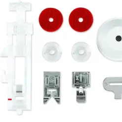 Singer 6699 Starlet Sewing MachinernThe Starlet 6699 sewing machine has a cheery design that just invites you to start sewing! It begins with a collection of beautiful stitches – 100 in all – which you can use for basic sewing, embellishing, quilting and more. When you select a stitch, the optimum stitch length and width are selected for you, saving time. Customize stitches to personalize projects using adjustable stitch length and stitch width, viewable on the LCD screen.rnSew buttonholes in one easy step with consistent results every time. There are 6 different styles of buttonholes to choose from – 2 styles of the basic bartack style for projects like dresses, shirts or home decor, 2 round end as well as 2 keyhole styles for menswear and outerwear. There’s also an endless buttonhole so you can make buttonholes any size you want.rnTake off the Removable Storage Compartment to access the Free Arm, which makes it easy to sew trouser hems and cuffs or around difficult-to-reach areas like children’s clothing.rnTake your sewing to the next level with the great selection of included presser feet.rnFor sewing larger projects like quilts, the Extension Table provides a level surface to make these projects easy to manage, and the Hard Cover helps protects your machine.