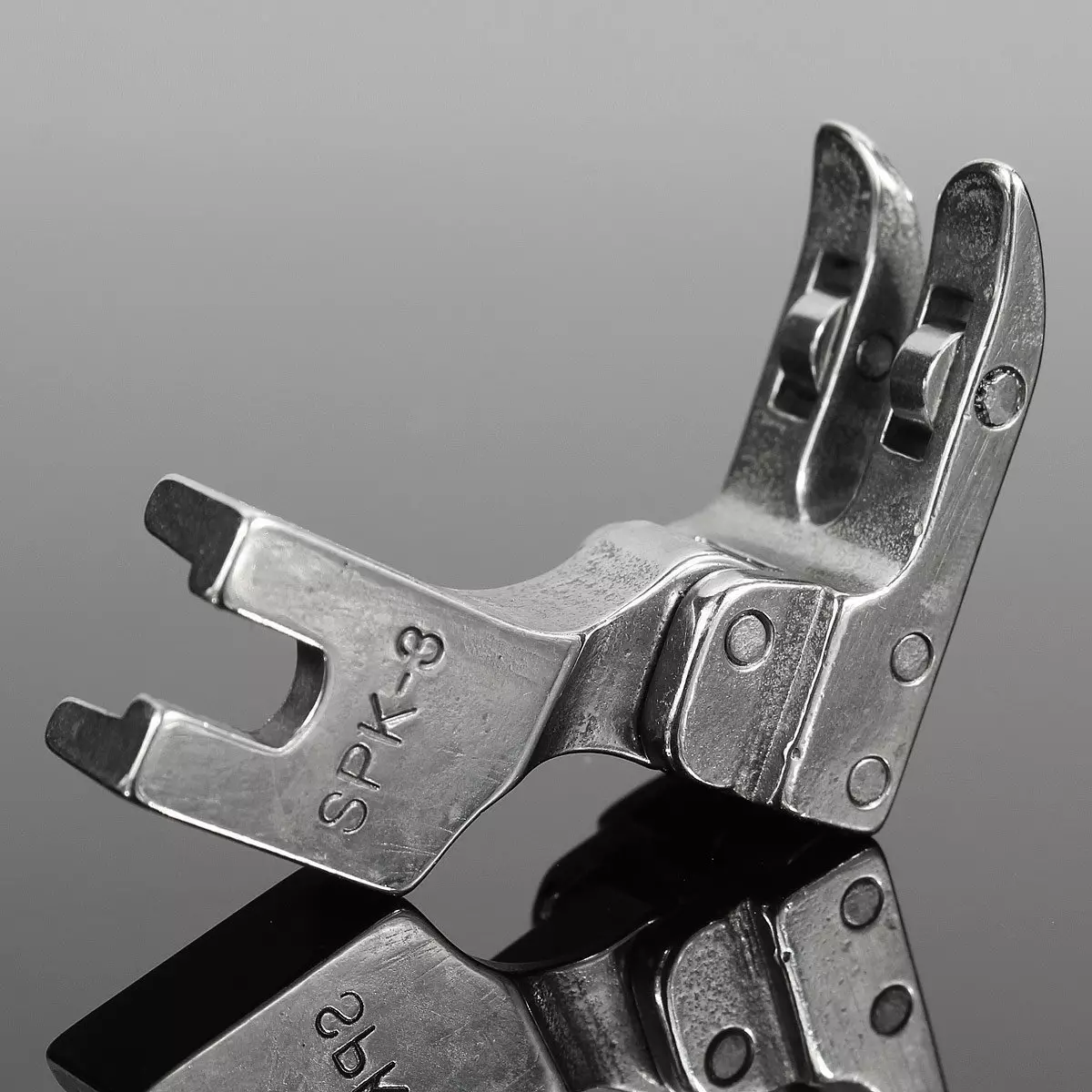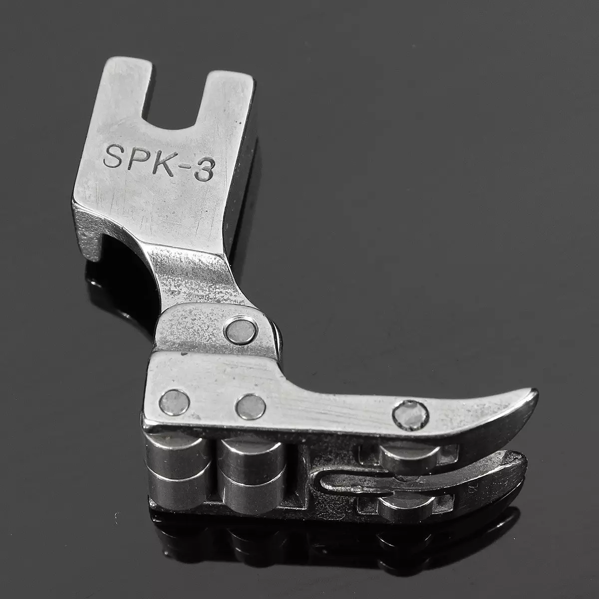 SPK High Shank Roller FootrnPart Number – SPK3, SPK-3rnMaterial: Stainless steelSize: 3.2*3*1.3cm.rnFor industrial sewing machine series. Sewing any material are smooth when sewing. Reduce the use of crease resistant type and drag the needs of the assist device. The roller type presser foot is more durable than Teflon or plastic presser foot. At the bottom of the roller foot is free ball bearing slide.rnMACHINE COMPATIBILITY:rnArtisan Models: 196R, 5550N, 8500N, ZJ-100Brother Models: B705, B707, B715, B716, B735, B737, B738, B745, B755, B757, B758, B767, B781, PQ1300, PQ1500Consew Models: 30, 98, 99, 102, 103, 105, 210, 217, 218, 219, 220, 230, 231, 290, 310, 2230, 7360R-1Econsew Models: DDL-5550, DDL-8500, DDL-8700Feiyue Models: 8500, 8700Gemsy Models: 8700Janome Models: 1600P, 1600DB, 1600DBXJUKI Models: DDL-127, DDL-227, DDL-500, DDL-552, DDL-553, DDL-555, DDL-5550, DDL-5600, DDL-8300, DDL-8500, DDL-8700, DDL-8900, DDL-9000, TL-98E, TL-98Q, TL-2000Qi, TL-2010QMitsubishi Models: DB-120, DB-121, DB-122, DB-126, DB-130, DB-170, DB-189, DB-199, LS2-130, LS2-150, LS2-180, LS2-190, LS2-1130Necchi Models: BU, Supernova, and others with the high shank presser foot systemReliable Models: MSK-8800, MSK-8550M, MSK-8870MRex Models: RX8500Singer Models: 31-15, 95, 96, 120U, 121C, 121D, 188K, 191D, 195K, 196K, 241, 251, 281, 366K, 400W, 402W, 451K, 491D, 591D, 600W, 660A, 691D, 770D, 771D, 2191, 2491DSunstar Models: KM-123A, KM-123B, KM-137A, KM-137B, KM-146BL, KM-250Tacsew Models: 5550, 8500, 8500-T, T8700Taiko Models: TK-505, TK-510Yamata Models: FY8500, FY8700rnAnd many other comparable industrial lockstitch sewing machines.rnPresser Foot Shank Type: High Shank rnPresser Foot Type: Roller Root